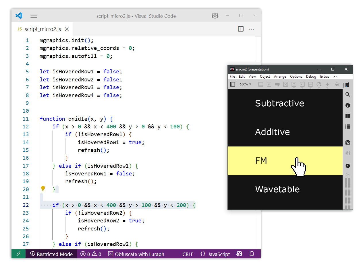 This course demonstrates unique ways to use Figma and Javscript with Max/MSP.