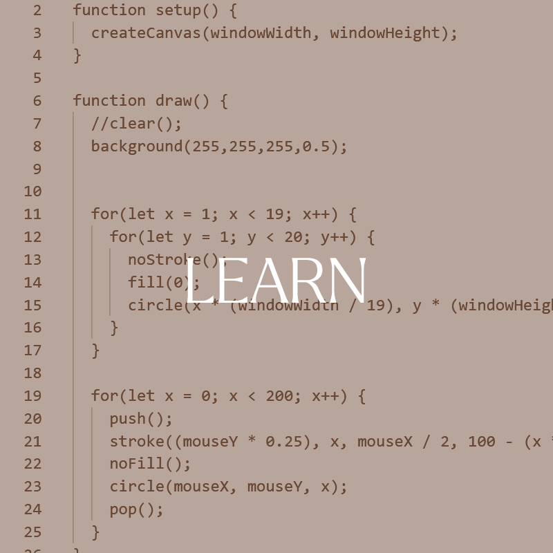 We will discuss the fundamentals of JavaScript within the context of P5js. This language is versatile and popular across many platforms.